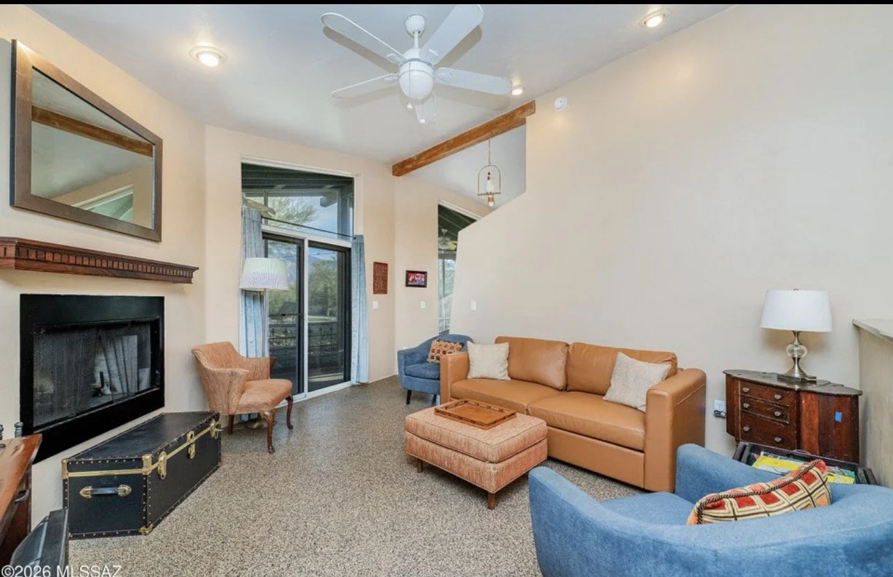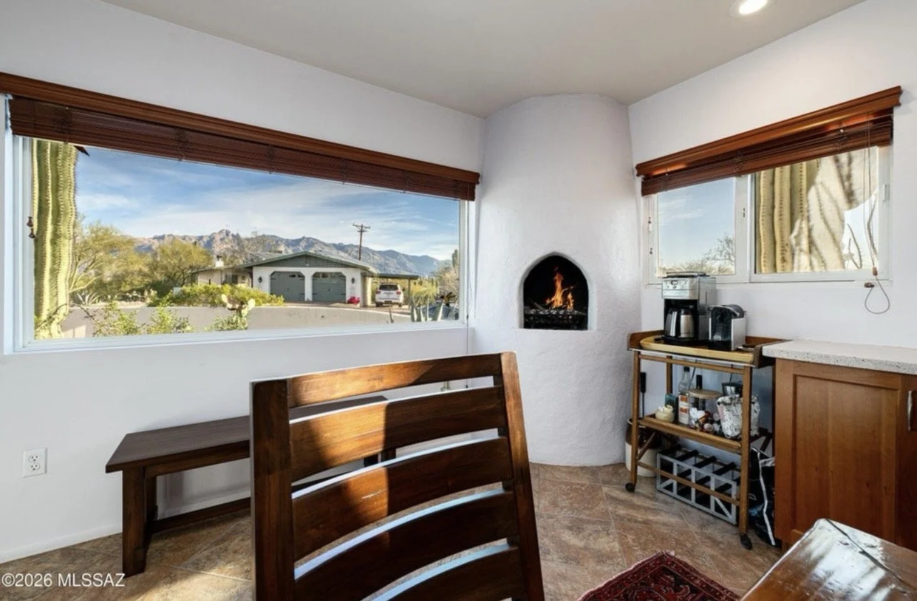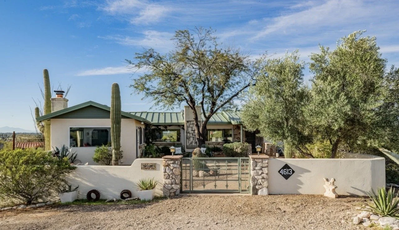 Set atop a gentle ridge in the Catalina Foothills, this remarkable property is surrounded by towering saguaros, sweeping views of the Santa Catalina Mountains, and sparkling city lights below. Spectacular sunrises and vivid desert sunsets frame the horizon, while its position at the end of a shared driveway ensures a rare sense of privacy and quiet. The main residence offers three bedrooms and two baths, with a spacious great room and dining area designed for relaxed living and effortless entertaining. Outdoors, a swimming pool with ramada and grilling area invites gatherings under the desert sky, complemented by a detached two-car garage.